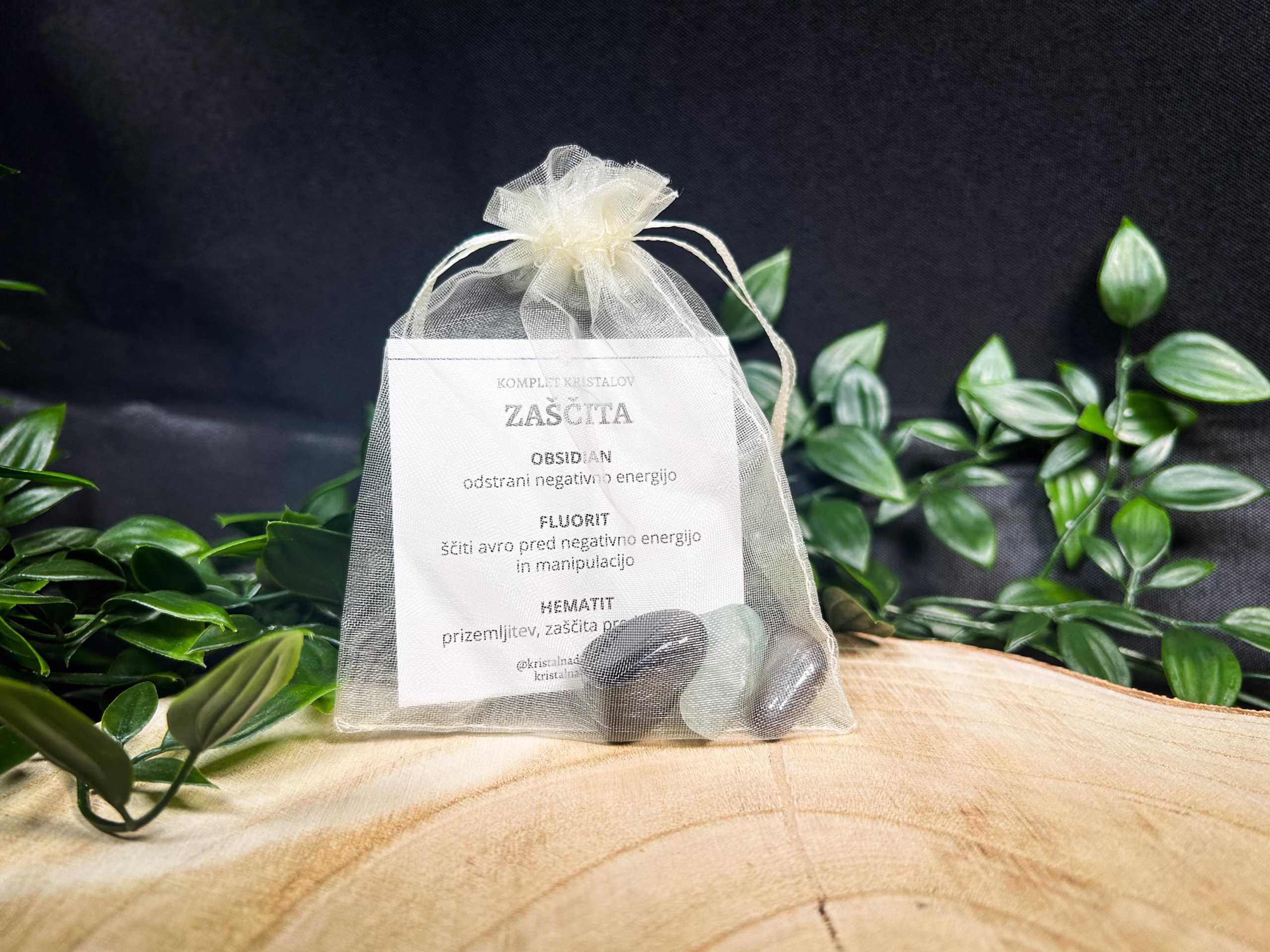 Ta skrbno izbran komplet vsebuje 3 kristale, ki skupaj tvorijo močno energijsko podporo za zaščito: obsidian, fluorit, hematit.