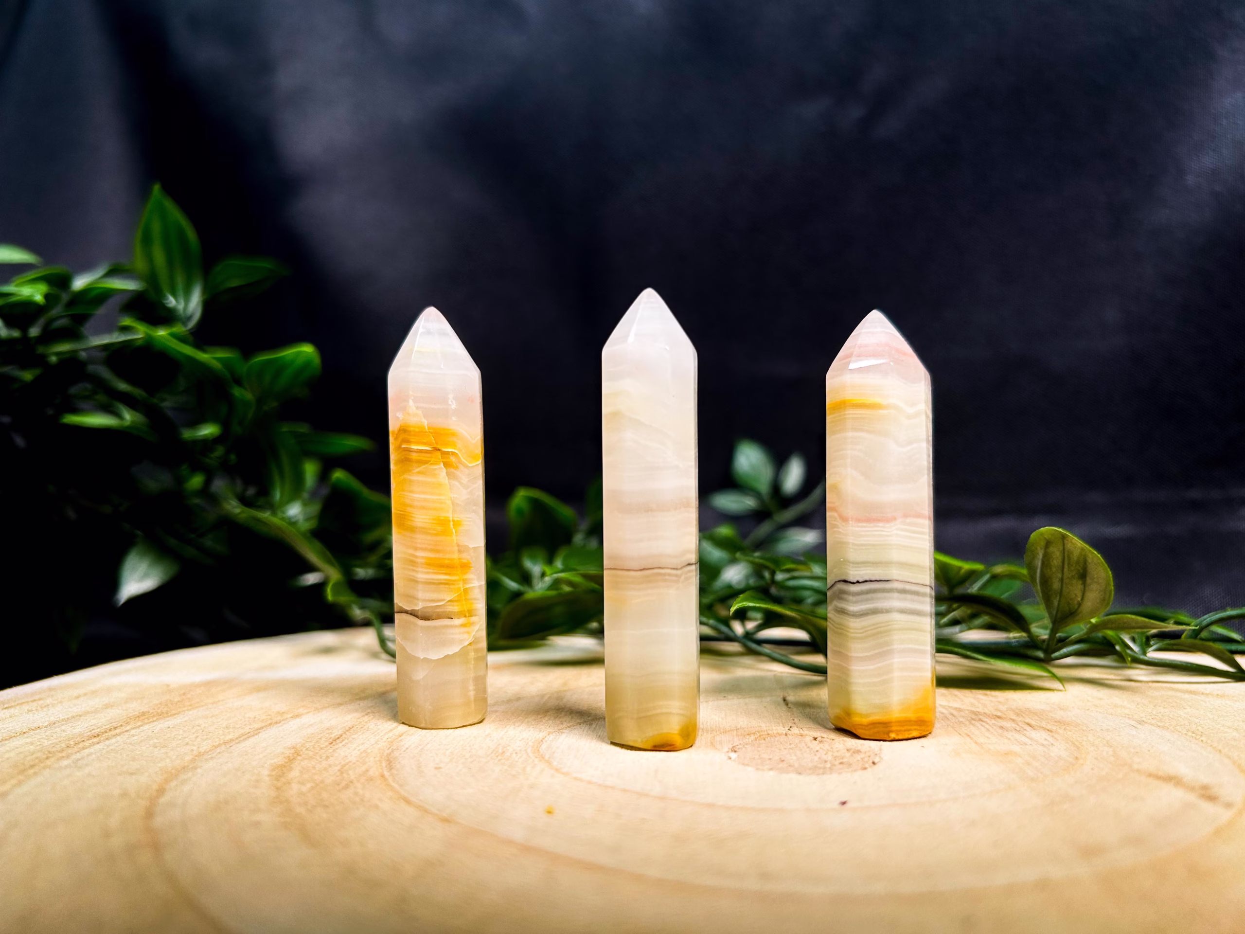 Rožnati progasti oniks je močno orodje za prebujanje srčne čakre in usmerjanje čustvenega zdravljenja skozi celotno fizično telo. Ta kamen zmanjšuje tesnobo in pomirja pretirane misli, ki lahko vodijo v obdobja žalosti in nemira. Roza progasti oniks dviguje duha ter prinaša pozitivno naravnanost, ki ne prežema samo misli in idej, ampak tudi dejanja in – kar je še pomembneje – reakcije. Ko imamo miren um in odprto srce, se naš vsakdan začne naravno usklajevati z instinkti in duhovnim namenom. S pomočjo notranje moči nam roza progasti oniks zagotavlja tolažbo, potrebno za usmerjanje univerzalne energije pri sledenju življenjski poti, ki pri nekaterih morda še ni bila odkrita.